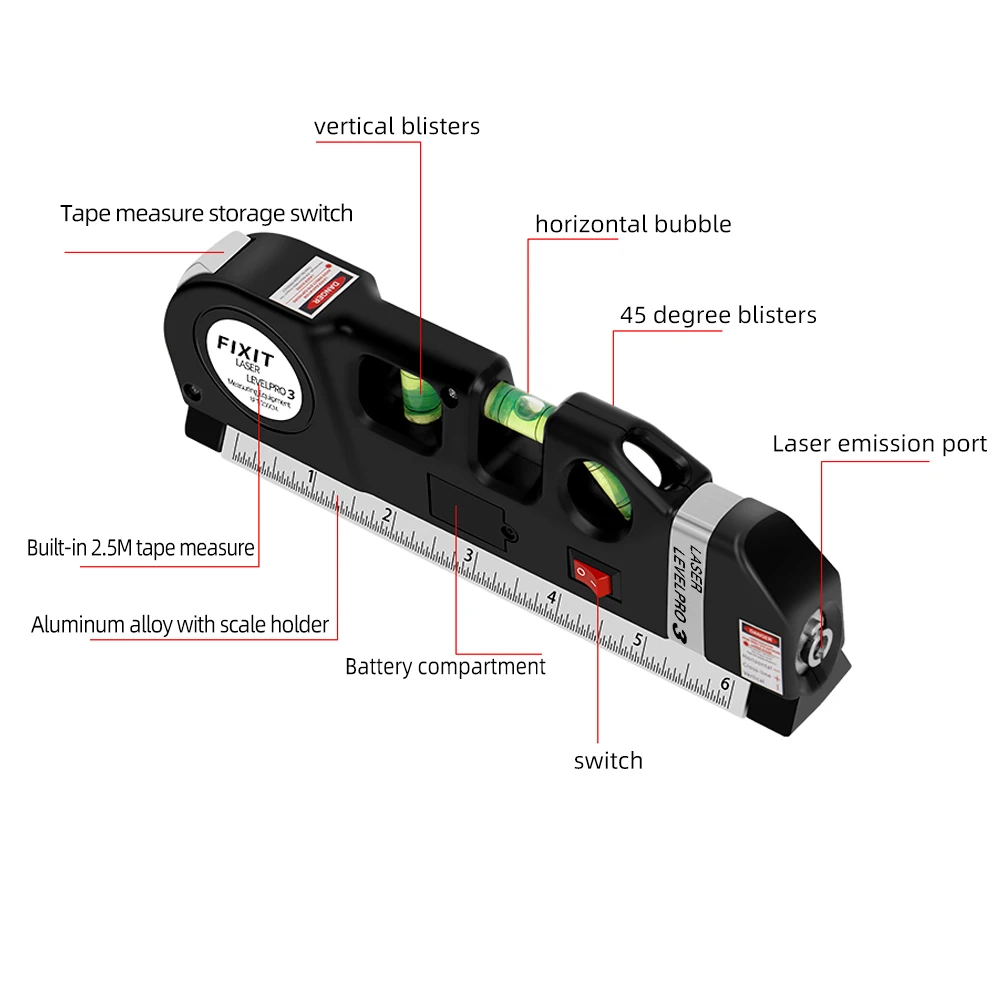 New Laser Level Horizon Vertical Measure Tape 8FT Aligner